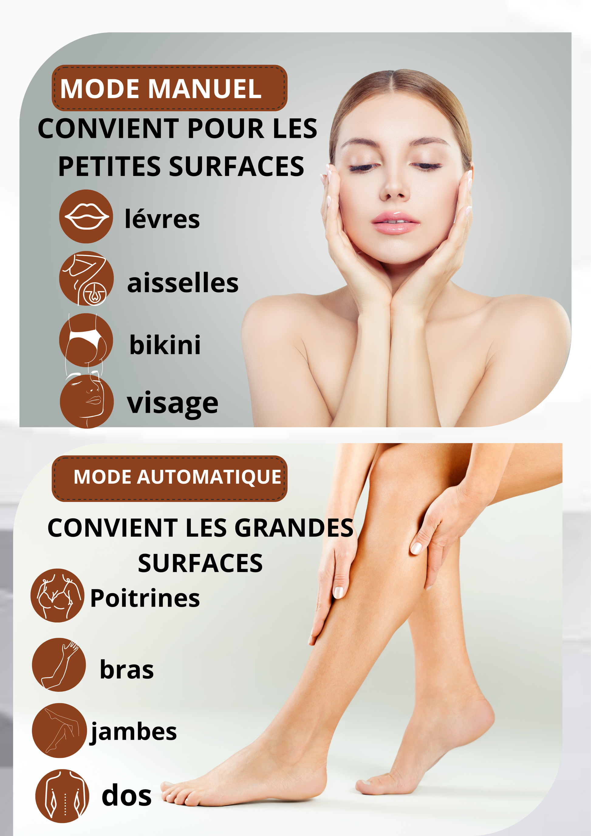 - **Mode Automatique** : Simplifie l'utilisation pour une épilation sans effort.